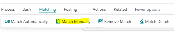 Click on Matching -> Match Manually to match the entry that you’ve made for the Beginning Bank G/L Balance entry.