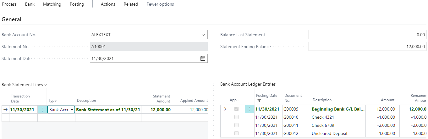 Once the matching is done for the beginning entry, you can post the reconciliation.