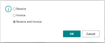 - Select the posting type you will be performing, either Invoice or Receive and Invoice and click OK