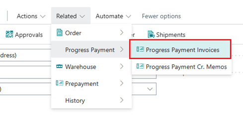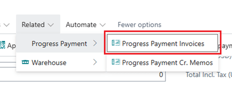 - Click Related>>Progress Payment>Progress Payment Invoices