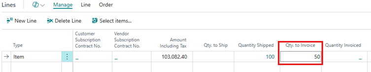 - Enter the Qty. to Invoice that you will be posting for the current sales order.