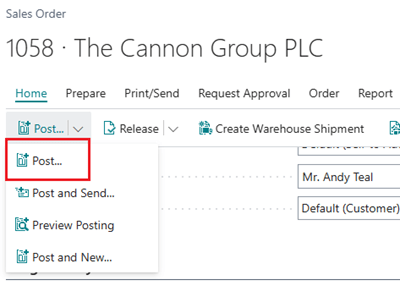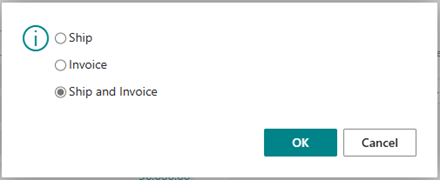 - Select the posting type you will be performing, either Invoice or Ship and Invoice and click OK