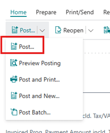 - Invoiced Prog. Payment Posted incld. Tax/VAT